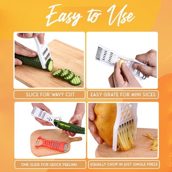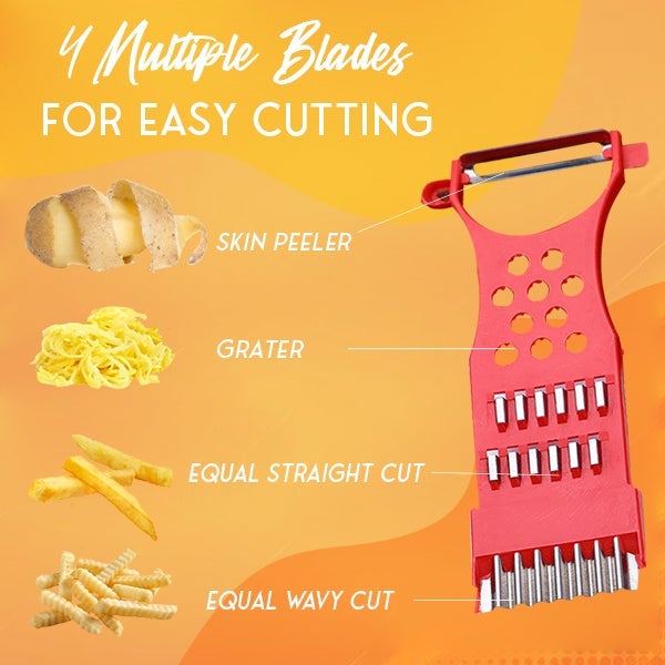 This 4-in-1 Multi Shredder & French Fries Cutter is the perfect kitchen companion for any aspiring chef. It features 4 interchangeable stainless steel blades that easily shred, grate, julienne, or cut your favorite foods for a professional-looking finish. With a simple twist of the handle, you can quickly create restaurant-style salads, coleslaw, french fries, and more.